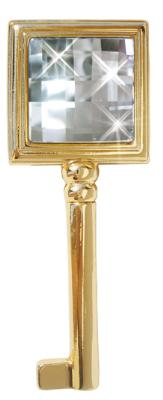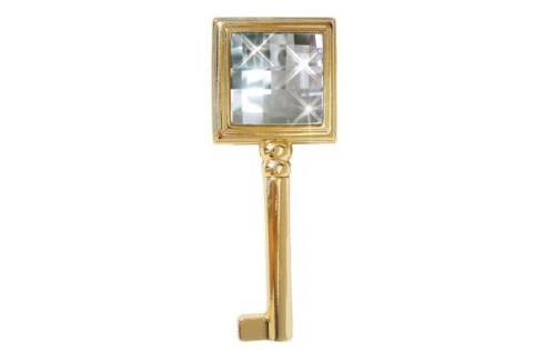 Elegancki klucz do mebli pokryty 24 karatowym złotem z elementem dekoracyjnym w postaci kryształu swarovskiego