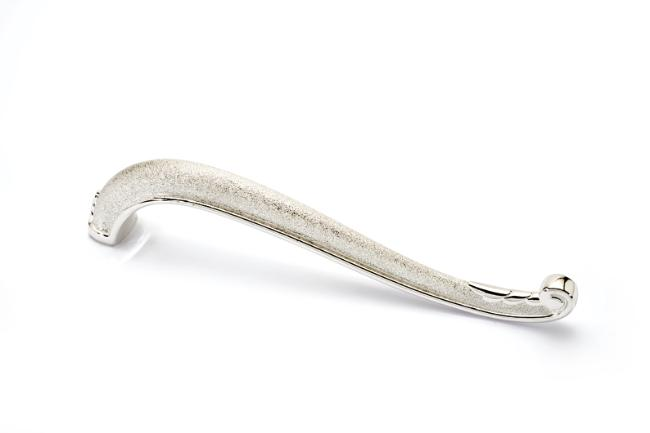 Elegancka rączka do dużych frontów meblowych jak drzwi do szafy czy drzwi do lodówki. Wykonana w eleganckim błyszczącym srebrnym wykończeniu.